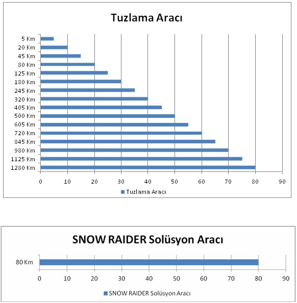 2. grafikte ise yine 80 km’lik yolun buzla mücadelesinde